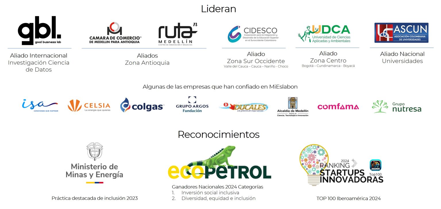 En 2025, MiEslabón fue aliado estratégico de RCN para los conversatorios "Ciudades Sostenibles: Educación, Juventud y Empleo", una serie de eventos con aliados estratégicos del ecosistema de oportunidades juveniles en Medellín y Cali. Conversamos con Universidades, secretarias de desarrollo económico, educación, Gremios y empresas, asi como Fundaciones que se sumaron como aliados y plantearon la necesidad del sistema que hoy presentamos desde MiEslabon.